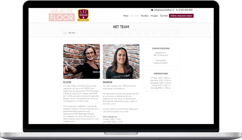 Hair on the Floor is een kapsalon in het centrum van Oosterhout en zij hebben ons benaderd de nieuwe website te ontwikkelen. Na het opzetten van een uniek en fris design zijn we gestart met het ontwikkelen van de website.