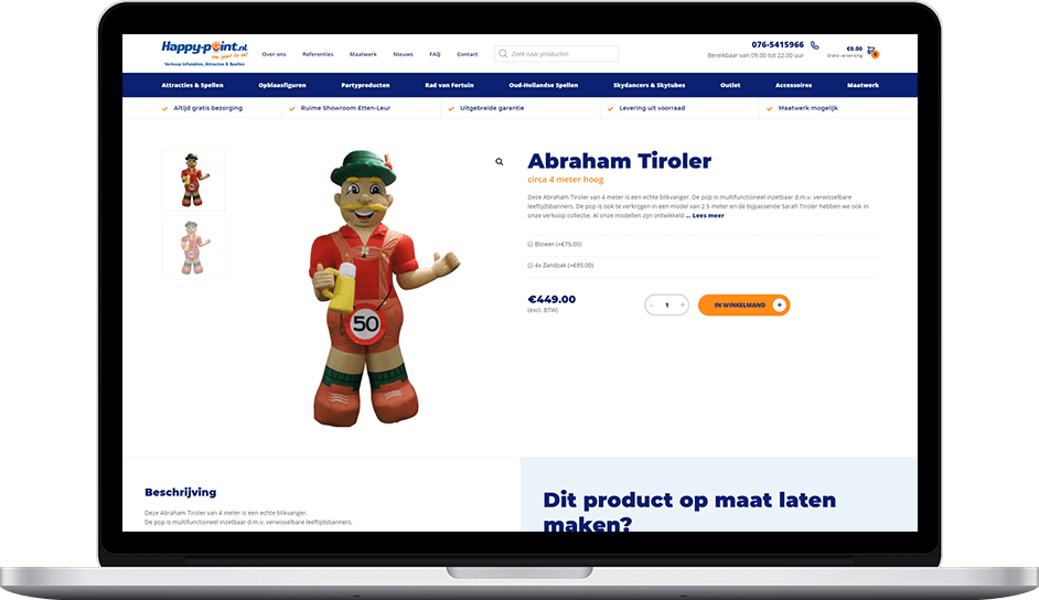 Na een lange maar vruchtbare afspraak bij Happy Point was ons direct duidelijk wat er aan de vorige webshop ontbrak. Op basis van deze input hebben wij een nieuw plan gemaakt voor het ontwikkelen van een nieuwe WooCommerce webshop. Naast de functionaliteiten die de oude webshop ook al had hebben wij nog extra functionaliteiten toegevoegd om het maximale uit de webshop te halen.