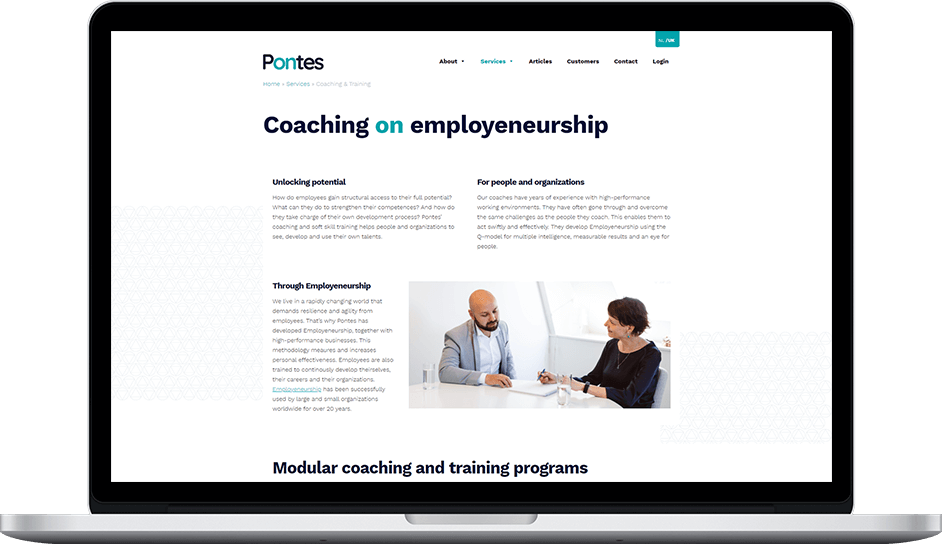 In samenwerking met Cboost en Brandyard mochten wij de nieuwe website van Pontes ontwikkelen. Brandyard heeft de branding en het ontwerp voor de website aangeleverd. Waarna wij dit ontwerp hebben omgezet naar een maatwerk WordPress website.